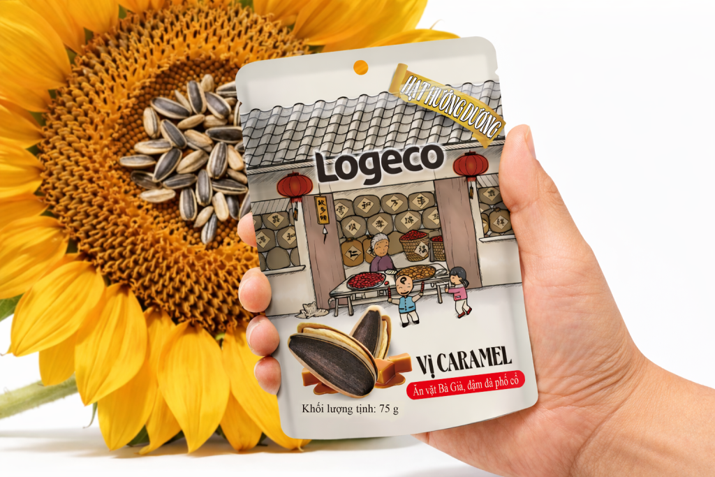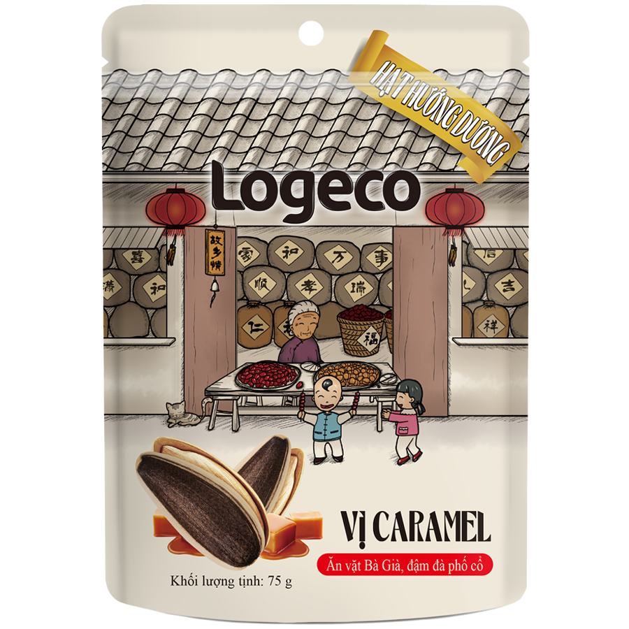HẠT HƯỚNG DƯƠNG LOGECO VỊ CARAMEL 75G – ĂN VẶT BÀ GIÀ, ĐẬM ĐÀ PHỐ CỔ